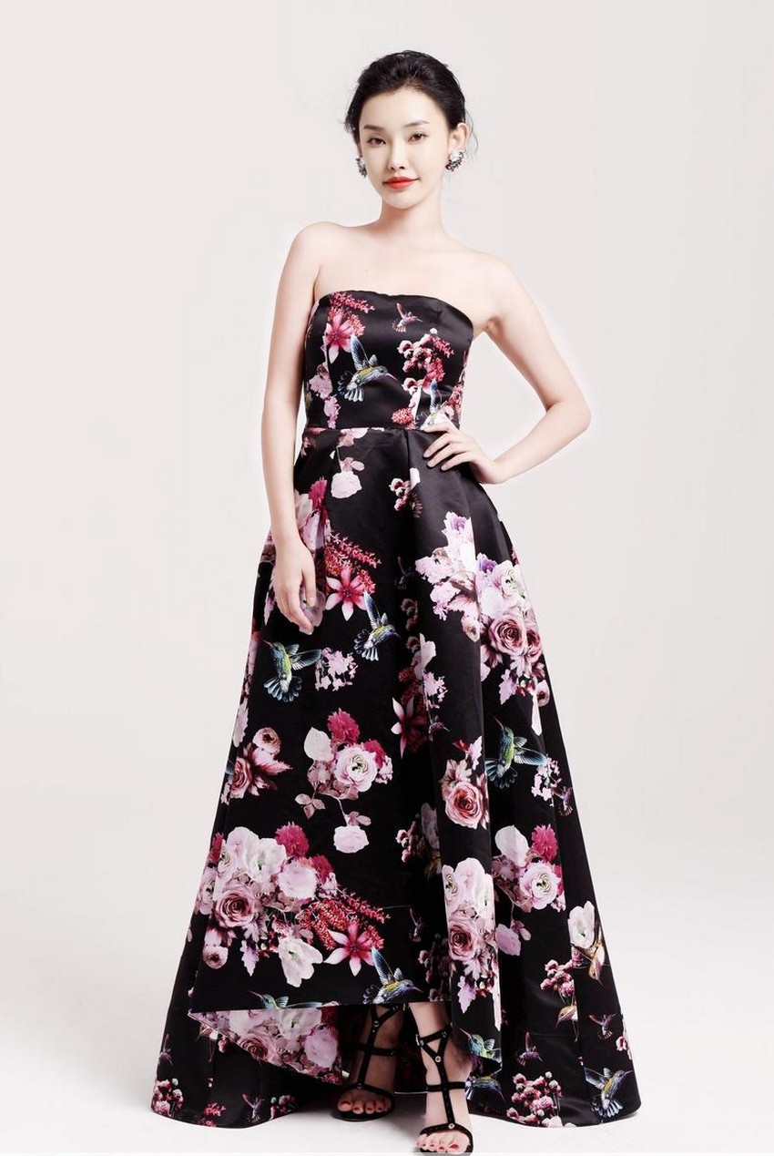 童菲,这位以其清新气质和灵动表演为人所知的演员,在此次拍摄中展现出了不同于荧幕形象的恬静与柔美。她身着的抹胸长裙,以淡雅底色铺陈,其上点缀着色彩柔和、形态各异的花朵图案,仿佛将整个花园的盎然生机穿在了身上。抹胸的设计恰到好处地展现了其优雅的肩颈线条与锁骨,既不失含蓄,又平添了几分轻盈的性感。
